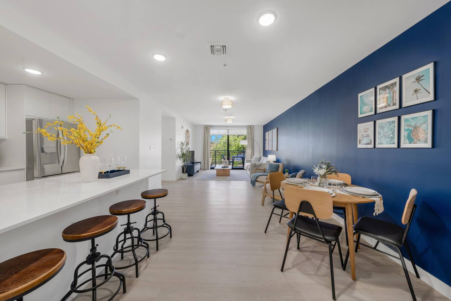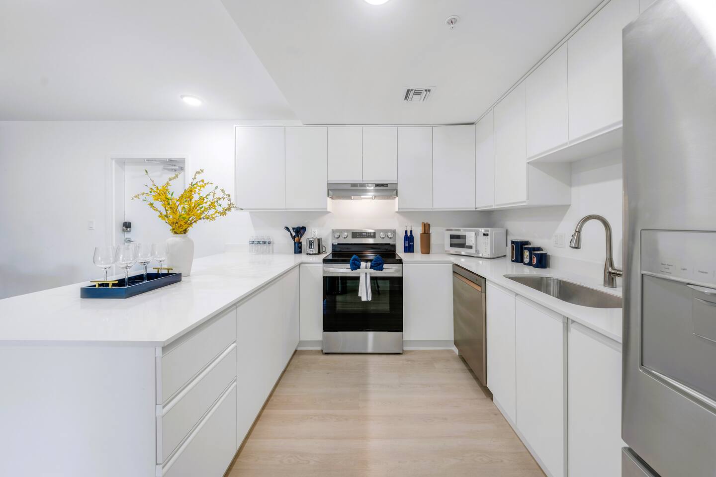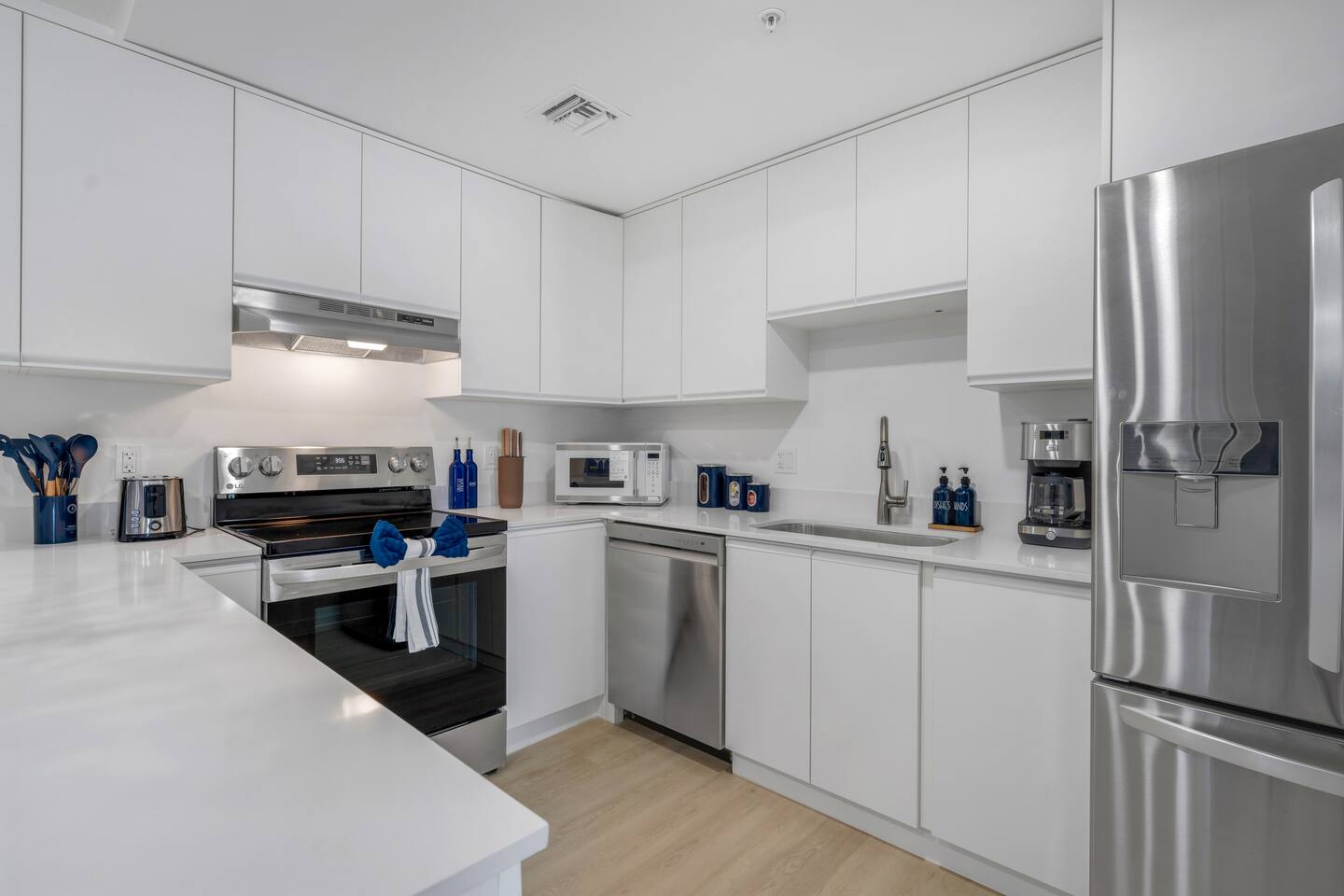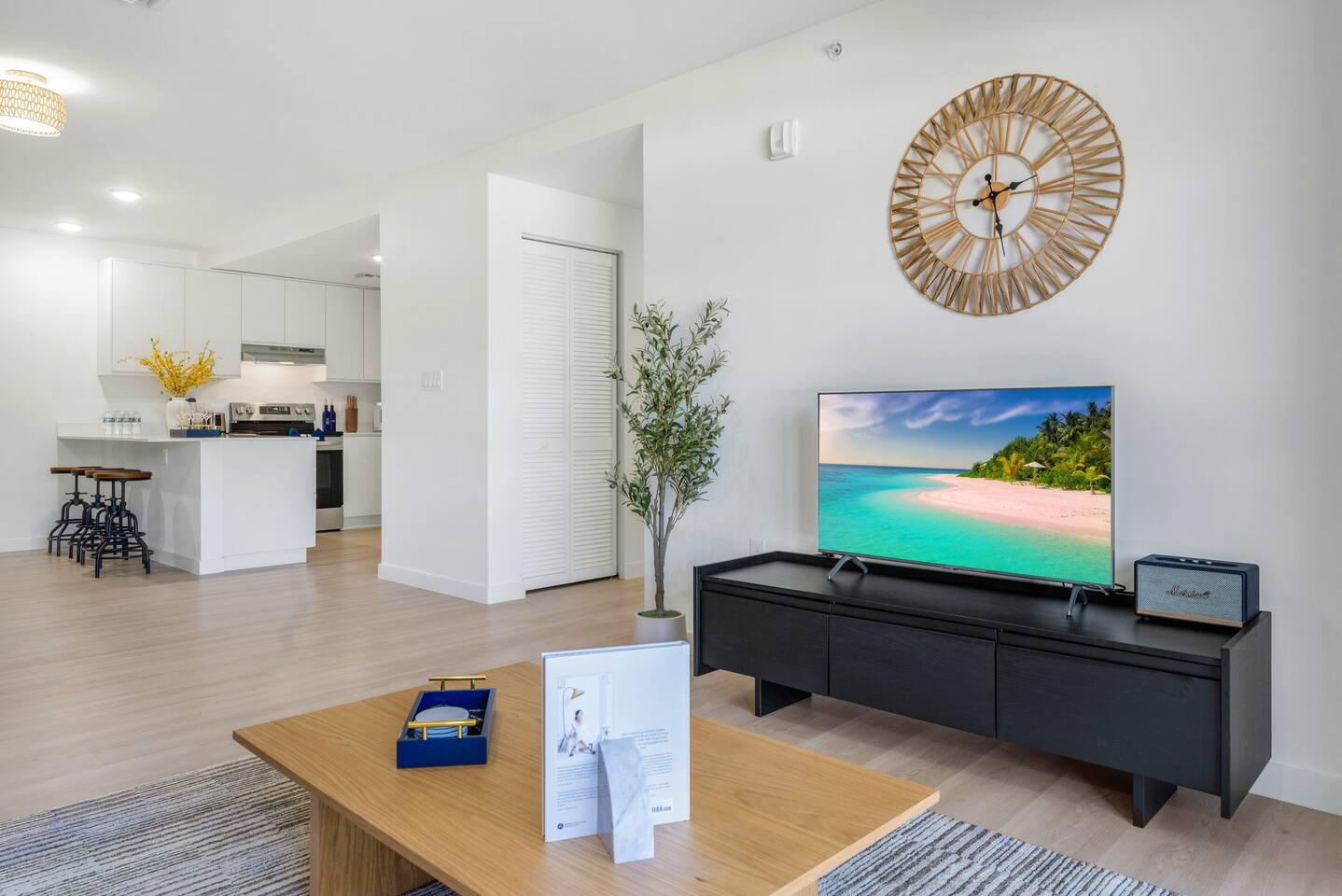 Designed for comfort and style, this expansive 3-bedroom, 2-bathroom apartment comfortably accommodates up to 8 guests. The open-plan living area flows into a dining space and a sleek, fully equipped kitchen, perfect for preparing everything from quick breakfasts to family dinners. The master bedroom features a king-size bed, a foldable double bed and a crib, an en-suite bathroom with a double vanity, and a dedicated workspace. The other two bedrooms offer another king-size bed and a queen-size bed and one queen air mattress, ensuring everyone has a restful night's sleep. Conveniently located near airports: just 10 min to Fort Lauderdale and 30 min to Miami International Airport, offering quick and easy access to both domestic and international flights. Your private apartment includes: 🔹Fully Equipped Kitchen: Featuring modern LG stainless steel appliances, including an electric stove and oven, plus a trash compactor and all cooking essentials. 🔹Comfortable Living: Relax with a Smart TV and stay connected with fast Wi-Fi. 🔹Premium Sound: Enjoy your favorite playlists on the Marshall Bluetooth sound system. 🔹 In-Unit Laundry: A washer and dryer are available for your convenience. 🔹Climate Control: Central air conditioning keeps the entire space cool and comfortable.