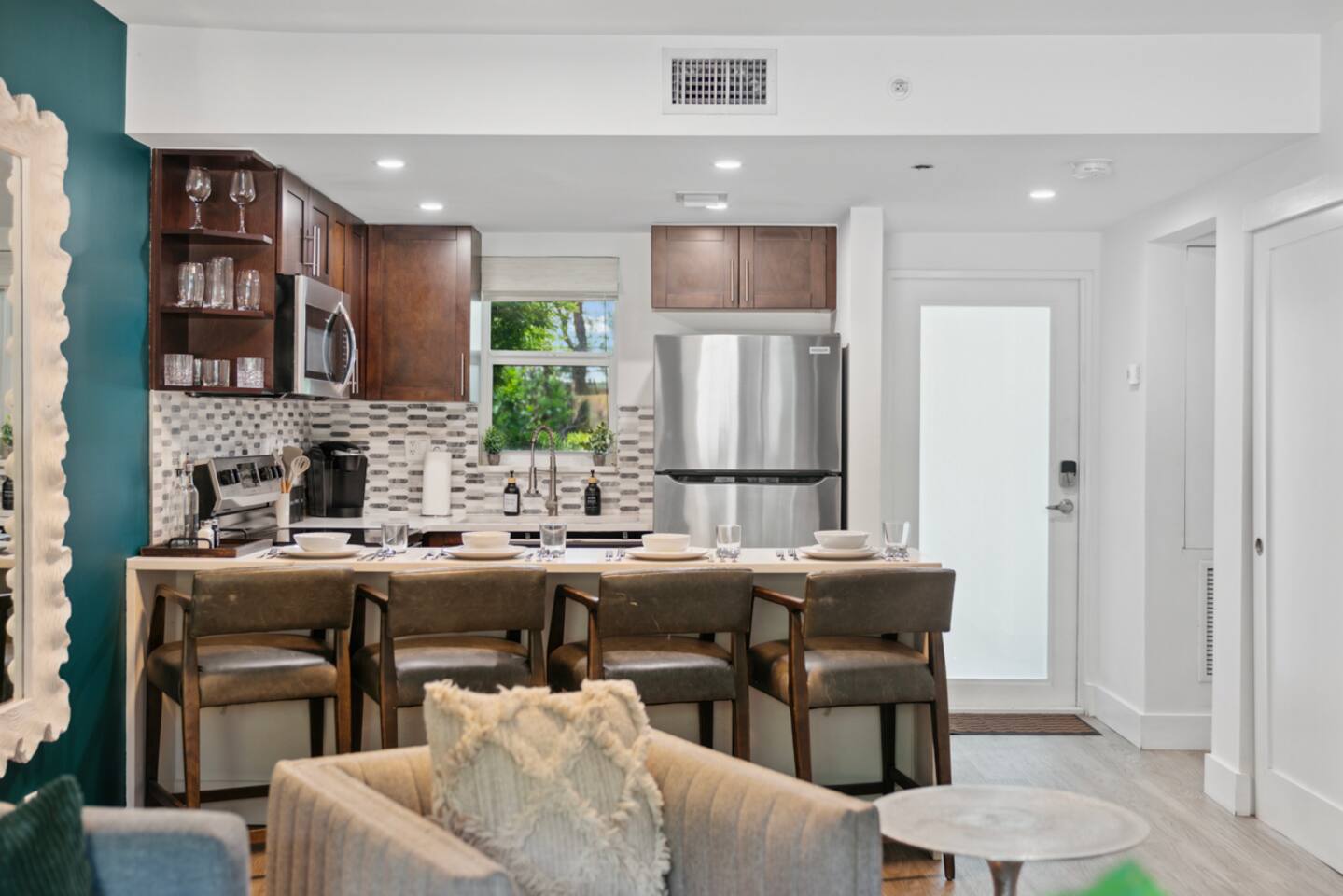 Welcome to your bright and stylish Boca Raton retreat, perfectly positioned just a five-minute walk from the sand. This private apartment offers a chic coastal escape for up to six guests, making it ideal for families or groups. Step into a warm, inviting living area featuring a comfortable sofa bed for extra guests and a Smart TV perfect for movie nights. The space flows into a fully equipped kitchen, complete with a breakfast bar and all the basics you'll need to get started, including coffee, tea, and cooking essentials. Rest peacefully in the spacious bedroom, which contains two comfortable double beds. The full bathroom is equipped with a relaxing bathtub, fresh towels, and essential toiletries for your convenience. Apartment features include: 🔹Central air conditioning 🔹Fast Wi-Fi 🔹In-unit washer and dryer 🔹Beach chairs and towels 🔹All necessary linens, toiletries, and kitchen supplies